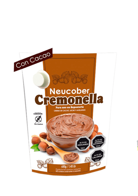Exquisita crema de cacao y avellanas europeas, en envase de 650 grs, ideal para uso de repostería, en dos fabulosas presentaciones, con y sin azúcar, ambas sin gluten.